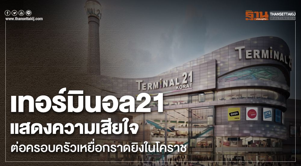เทอร์มินอล 21 ศูนย์การค้าขนาดใหญ่ในจังหวัดนครราชสีมา (โคราช) แสดงความเสียใจต่อครอบครัวผู้เสียชีวิตและผู้บาดเจ็บ รวมทั้งขอขอบคุณการปฏิบัติงานของเจ้าหน้าที่ทุกฝ่ายทุกหน่วยงาน
