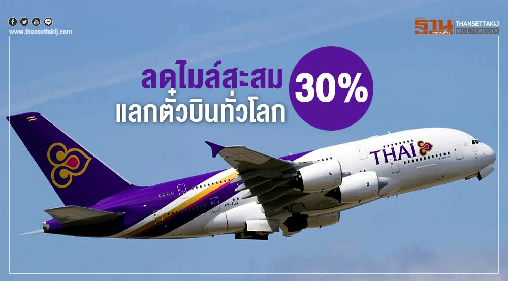 นายวิวัฒน์ ปิยะวิโรจน์ รองกรรมการผู้อำนวยการใหญ่สายการพาณิชย์ บริษัท การบินไทย จำกัด (มหาชน) เปิดเผยว่า บริษัทฯ มอบส่วนลด 30% ในการใช้ไมล์สะสมแลกรางวัลบัตรโดยสารเครื่องบินใน 34 เส้นทางบิน ครอบคลุมเส้นทางในภูมิภาค ทวีปเอเชีย ยุโรป และออสเตรเลีย