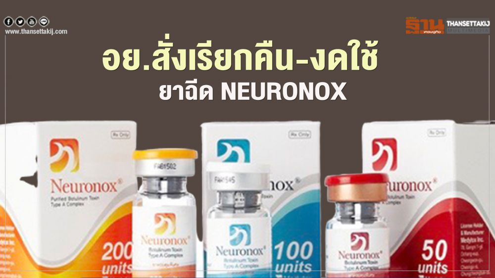 อย. แจงเหตุ ระงับการนำเข้า จำหน่าย และเรียกเก็บคืนยา NEURONOX ชี้ได้รับแจ้งจากกระทรวงความปลอดภัยอาหารและยาของสาธารณรัฐเกาหลี ให้ระงับใช้ชั่วคราว