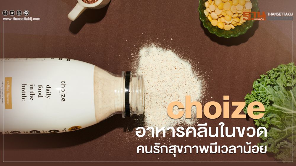 สำหรับอาหารคลีนในขวดแบรนด์ choize เป็นอาหารคลีนในรูปแบบผงบรรจุขวดปริมาณ 88 กรัม เวลาจะรับประทานแค่เติมนํ้าและเขย่าให้ได้ปริมาตร 400-500 มิลลิลิตรก็สามารถรับประทานได้ 1 มื้อ โดย choize มีสารอาหารครบ 5 หมู่ ประกอบด้วย โปรตีน, คาร์โบไฮเดรต, วิตามินรวม, เกลือแร่, ไขมัน และมีไฟเบอร์สูงช่วยในการขับถ่าย ซึ่งการทาน 1 มื้อจะให้คุณค่าทางอาหารเทียบเท่าอาหารคลีน 1 มื้อ ไม่มีนํ้าตาลแต่ใช้สารทดแทนความหวาน และทำให้อิ่มได้นานถึง 3-4 ชั่วโมงต่อมื้อต่อขวด