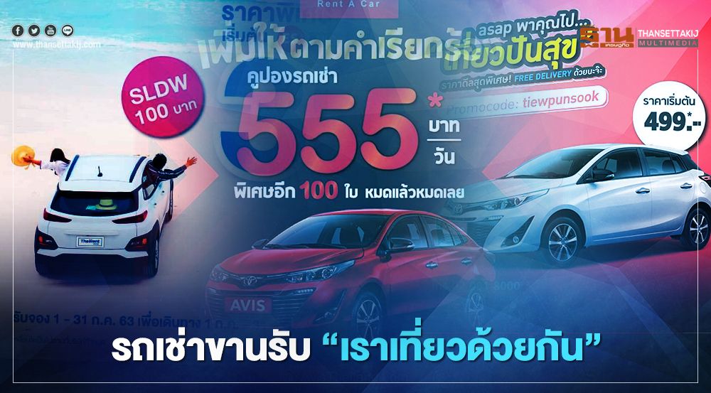 นอกเหนือจากโรงแรม ร้านอาหาร สถานที่ท่องเที่ยวและสายการบินจะได้รับอานิสงค์จากโครงการ "เราเที่ยวด้วยกัน"แล้ว ในกลุ่มผู้ประกอบการธุรกิจเกี่ยวเนื่องอย่างรถเช่า ก็ต่างออกมาขานรับกับโครงการดังกล่าวด้วยเช่นกัน โดยได้จัดทำแคมเปญ โปรโมชันต่างๆออกมาสนับสนุน ซึ่งจะมีอะไรบ้างนั้น วันนี้ฐานเศรษฐกิจได้รวบรวมเอาบรรดาแบรนด์รถเช่ารายใหญ่ๆที่มีสาขากระจายอยู่ทั่วประเทศมานำเสนอ