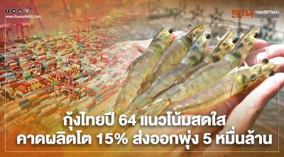 กุ้งไทยปี 64 แนวโน้มสดใส คาดผลิตโต 15% ส่งออกพุ่ง 5 หมื่นล้าน