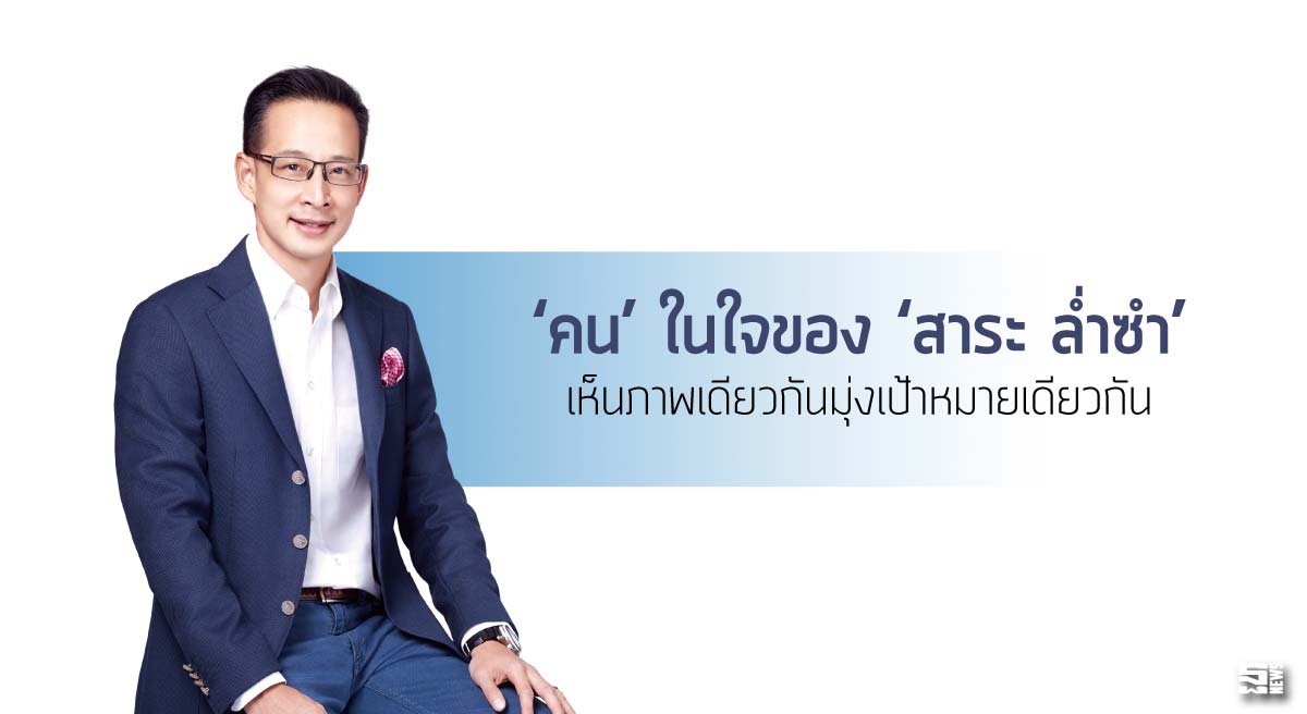 ‘คน’ ในใจของ ‘สาระ ล่ำซำ’ กรรมการผู้จัดการและประธานเจ้าหน้าที่บริหาร บริษัท เมืองไทยประกันชีวิต จำกัด (มหาชน) คือ พนักงานกว่า 2,000 คน และตัวแทนประกันชีวิตอีกกว่า 2.6 หมื่นคน ที่ "สาระ" ผู้นี้กำลังลงทั้งแรงกายและแรงใจเพื่อสื่อสารและผลักดันให้ทุกคนเห็นภาพและเข้าใจตรงกันถึงเป้าหมายแห่งความสำเร็จร่วมกันนั่นเอง"