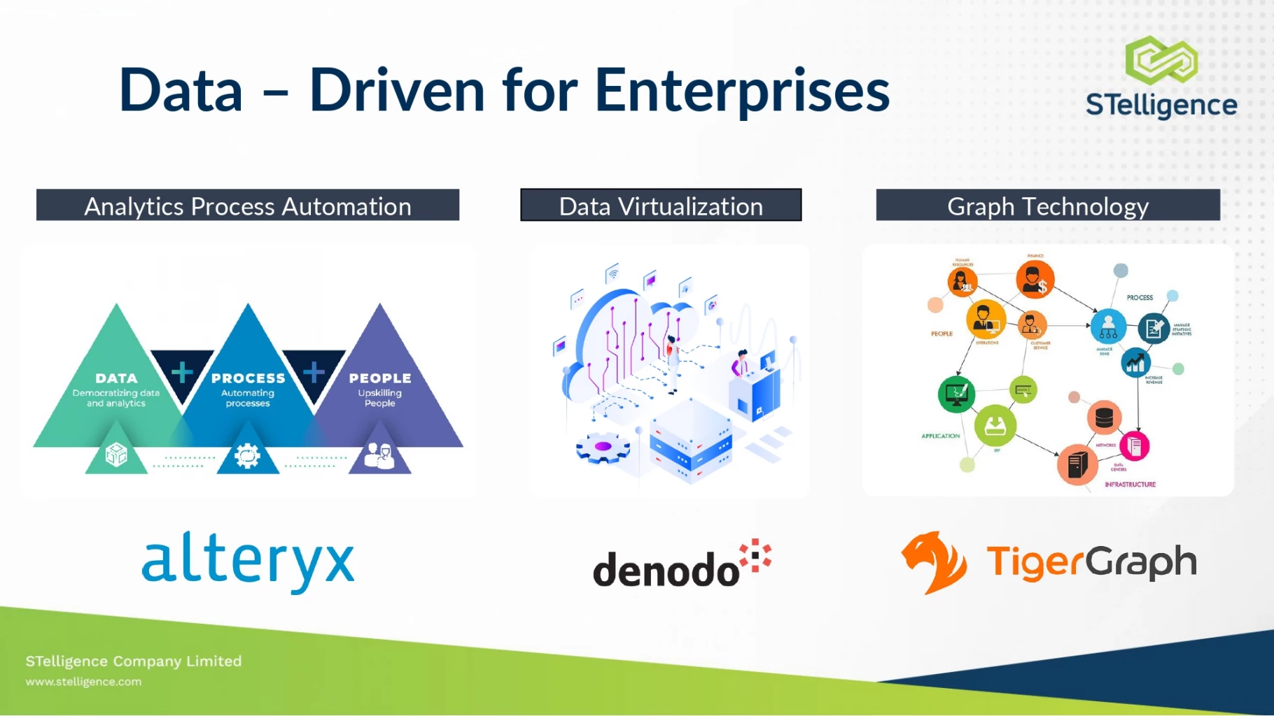 แต่เป็นการกำหนดโครงสร้างของการเข้าถึงข้อมูลที่มีความยืดหยุ่นและมีการกำกับดูแล เมื่อต้องการเข้าถึงข้อมูลก็จะได้ข้อมูลที่มีความทันสมัยและทันท่วงที สามารถเข้าถึงและใช้งานข้อมูลขององค์กรได้ทันทีและแบ่งปันให้กับหน่วยงานที่เกี่ยวข้องได้ โดยดึงข้อมูลมาจากแหล่งเดียว จึงช่วยประหยัดทั้งต้นทุนและลดเวลาในการจัดการบริหารข้อมูล เอส เทลลิเจทส์ นำเสนอบริการนี้ในระบบ Denodo ที่มีความยืดหยุ่น และเป็นมิตรต่อผู้ใช้งาน