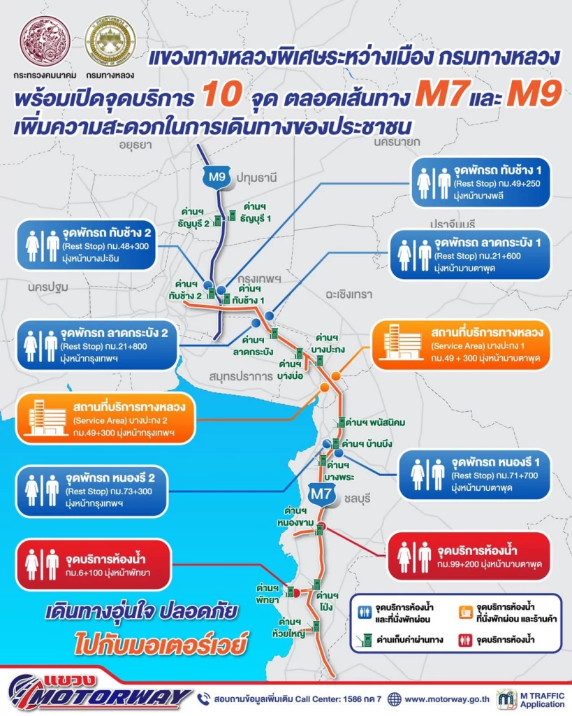 - สำหรับมอเตอร์เวย์สาย 6 (บางปะอิน - นครราชสีมา)