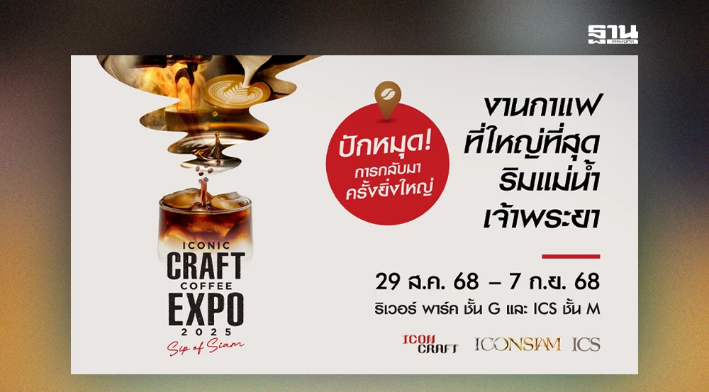 คนรักกาแฟพลาดไม่ได้ 29 สิงหาคม – 7 กันยายน 2568 นี้ มาดื่มด่ำกับกาแฟแก้วพิเศษ และร่วมเป็นส่วนหนึ่งในการขับเคลื่อนวัฒนธรรมกาแฟไทยให้เติบโตอย่างยั่งยืนใน “ICONIC CRAFT COFFEE EXPO 2025” ณ ริเวอร์ พาร์ค ชั้น G ไอคอนสยาม และชั้น M ไอซีเอส สอบถามรายละเอียดเพิ่มเติม โทร.1338 หรือ www.iconsiam.com และ Facebook:ICONSIAM