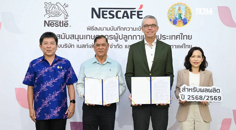 บริษัท เนสท์เล่ (ไทย) จำกัด จับมือสมาคมชาวสวนกาแฟไทย ลงนามบันทึกความเข้าใจในการสนับสนุนเกษตรกรผู้ปลูกกาแฟในประเทศไทย ด้วยการรับซื้อเมล็ดกาแฟจากเกษตรกรในประเทศไทยในฤดูการผลิต 2568/2569