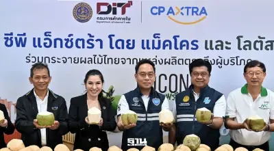 มะพร้าวน้ำหอมผลผลิตพุ่ง สวนทางส่งออกชะลอ กดราคาหน้าสวนร่วงต้นปีเหลือ 2–3 บาทต่อลูก กรมการค้าภายใน ผนึก แม็คโคร–โลตัส เพิ่มรับซื้อ 6 ล้านลูก กระจายกว่า 2,600 สาขาทั่วประเทศ ดูดซับส่วนเกิน–พยุงราคา คาดแนวโน้มเริ่มฟื้นต่อในเดือนเมษายน
