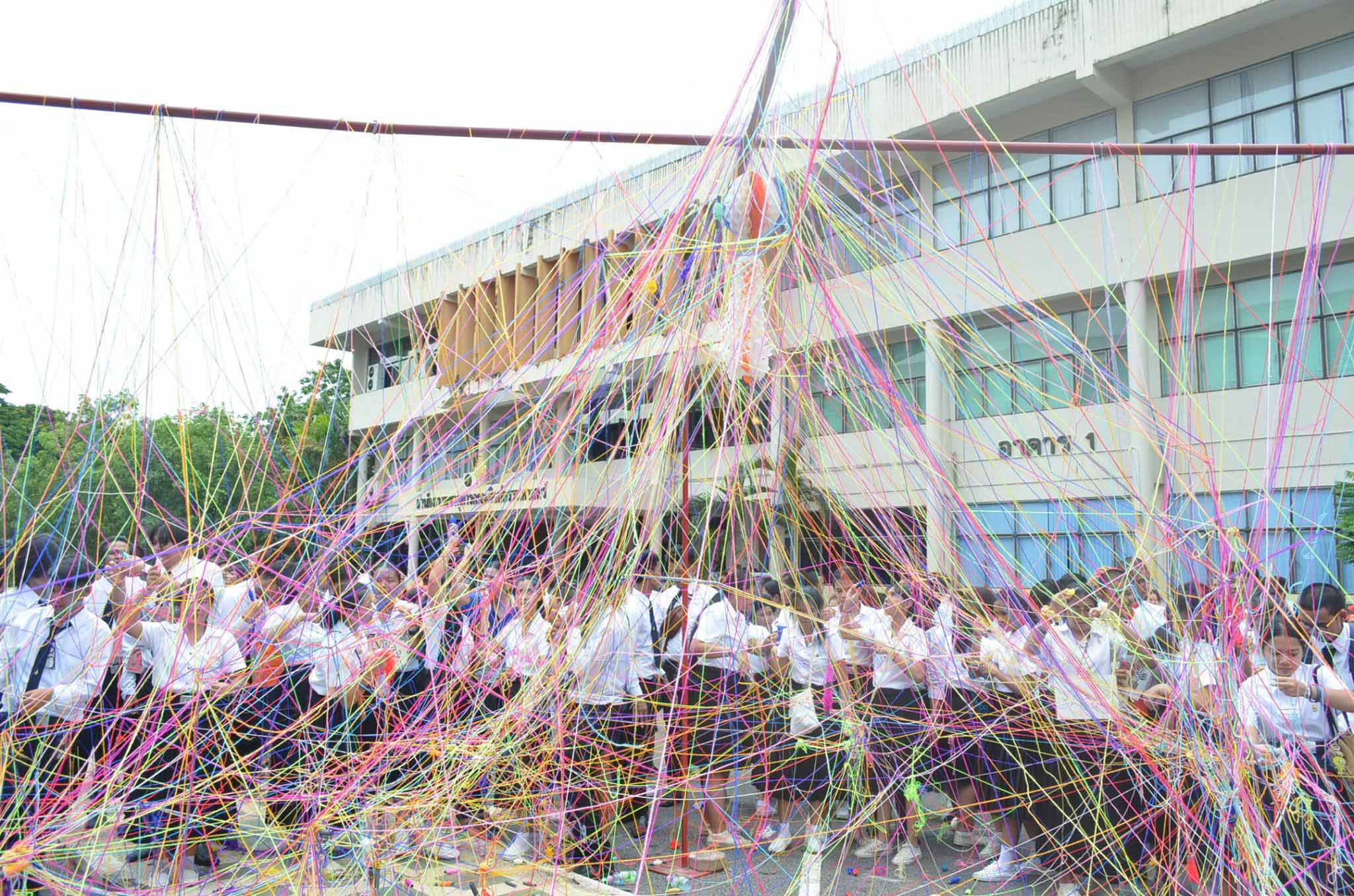 การโยนลูกรักษ์ของตนเองให้ข้ามเสาที่ตั้งไว้จนเกิดเป็ นสายใยถักทอประสานไปมาจาก 1 เส้น เป็น 2,3,4 จนเกิดเป็นโครงสร้างสานใยที่แน่นหนา สวยงามเกิดจากลูกรักษ์ทั้งหมดได้มาประสานเป็นหนึ่งเดียวคือนักศึกษาใหม่คณะศิลปกรรมศาสตร์