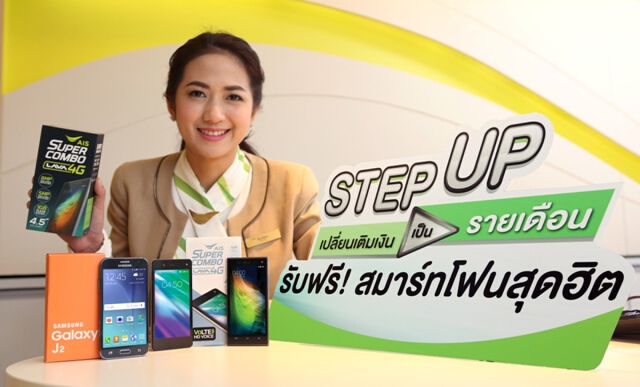 - Samsung Galaxy J2 (ปกติราคา 4,990 บาท) เมื่อสมัครแพ็กเกจ Hot Deal Non-Stop 399 บาท ขึ้นไป และชำระค่าบริการล่วงหน้า 2,000 บาท