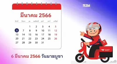 ไปรษณีย์ไทยปิดให้บริการ วันมาฆบูชา 2566 ตรงกับวันจันทร์ที่ 6 มีนาคม หยุดนำจ่ายบริการพัสดุภัณฑ์หรือไม่คลิกอ่านด่วน