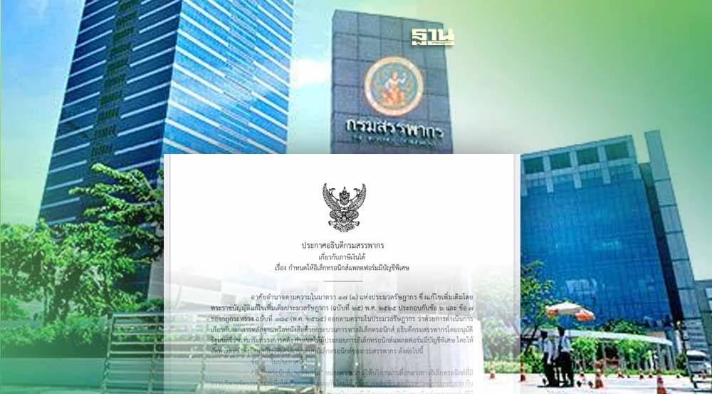 ทั้งนี้ กรมสรรพากรได้ออกประกาศอธิบดีกรมสรรพากร เมื่อวันที่ 27 ธค 2566 กำหนดให้อิเล็กทรอนิกส์แพลตฟอร์ม (ผู้ให้บริการผ่านสื่อกลางทางอิเล็กทรอนิกส์ที่เชื่อมระหว่างผู้ประกอบการ กับผู้บริโภค ไม่รวมถึงกิจการภายใต้การกำกับดูแลของ BOT หรือ ก.ล.ต.) ที่จดทะเบียนในไทย และมีรายได้ในรอบบัญชีเกิน 1,000 ล้านบาท ยื่นบัญชีพิเศษ ที่แสดงข้อมูลรายรับของอิเล็กทรอนิกส์แพลตฟอร์มที่ได้รับจากผู้ประกอบการผ่านระบบอิเล็กทรอนิกที่กรมสร้างขึ้น เพื่อรองรับไว้โดยเฉพาะโดยเริ่มใช้ตั้งแต่วันที่ 1 มค 2567 เป็นต้นไป