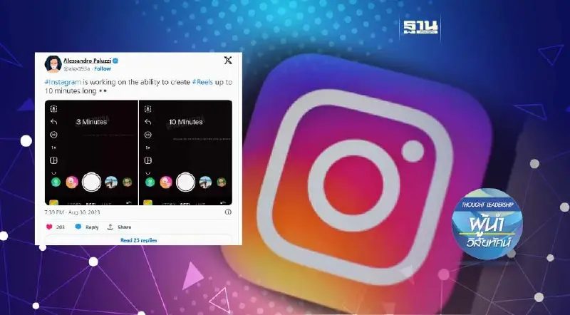 เรียกได้ว่าเป็นศึกชิงแชมป์ระหว่างโซเชียลมีเดียอย่างต่อเนื่อง ด้วยที่มีการอัพเดทฟีเจอร์การใช้งานให้หลากหลายและตอบโจทย์ผู้ใช้งานอย่างบ่อยครั้งในช่วงนี้ ล่าสุด Instagram ประกาศการทดสอบล่าสุดที่สามารถให้ผู้ใช้งานสามารถกำหนดการเปลี่ยนแปลงเนื้อหาวิดีโอโซเชียลมีเดียใหม่ได้ แพลตฟอร์มที่ Meta เป็นเจ้าของกำลังทำงานภายในเพื่อพัฒนาที่จะขยายความยาวสูงสุดของ Reels เป็น 10 นาที ส่วนขยายใหม่ที่เป็นไปได้ของ Reels จะช่วยให้ผู้สร้างบน Instagram โพสต์เนื้อหาเชิงลึกได้มากขึ้น ทำให้เป็นการแข่งขันสำหรับ TikTok, X และ YouTube