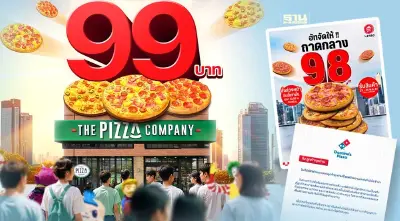 สงครามพิซซ่าปะทุเดือด เรียกเสียงฮือฮาบนโลกโซเชียลอีกรอบ เริ่มจาก The Pizza Company เปิดแคมเปญไวรัล ถาดกลาง 99 บาท ตามมาด้วย Pizza Hut ทำแคมเปญราคาสู้ 98 บาท ส่วน Domimo’s Pizza ร่อนจดหมายถึงลูกค้า ทำโปรโมชันหลักความเป็นจริง และคำนึงถึงคุณภาพ การบริการ และการจัดส่ง