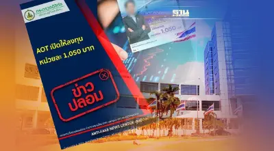 AOT เปิดให้ลงทุนหน่วยละ 1,050 บาท ข่าวปลอม อย่าแชร์! ยืนยันไม่ได้มีการโฆษณาเชิญชวนให้มีการลงทุนเกี่ยวกับกรณีดังกล่าวแต่อย่างใด