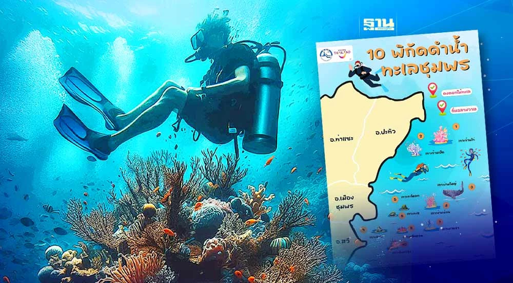 ททท.สำนักงานชุมพร แจก 10 พิกัด ให้ทุกคนดำน้ำดูปะการัง ในทะเลใต้ สำหรับ 10 พิกัด ที่ ททท.สำนักงานชุมพร ดำน้ำดูปะการัง มีดังนี้