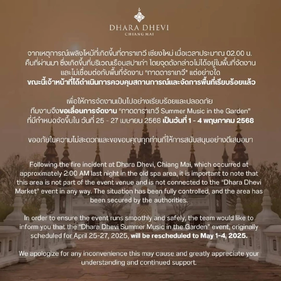 เนื่องจากธุรกิจต้องเดินต่อ ประกอบกับไฟไหม้โรงแรมดาราเทวี เชียงใหม่ที่เกิดขึ้นเมื่อวันที่ 23 เมษายน 2568 ตอนช่วง 02:00 น.มีความเสียหายคิดเป็นไม่เกิน 10% ของพื้นที่ในโรงแรมทั้งหมด