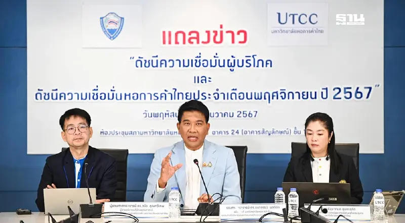 นายธนวรรธน์ พลวิชัย อธิการบดีหอการค้าไทย และประธานที่ปรึกษาศูนย์พยากรณ์เศรษฐกิจและธุรกิจมหาวิทยาลัยหอการค้าไทย เปิดเผยว่า จากผลของการสำรวจความเชื่อมั่นของผู้บริโภคในเดือนพฤศจิกายน 2567 ดัชนีความเชื่อมั่นของผู้บริโภคปรับตัวดีขึ้นต่อเนื่องเป็นเดือนที่ 2 ในรอบ 9 เดือน เนื่องจากผู้บริโภคเริ่มเห็นว่ามาตราการกระตุ้นเศรษฐกิจของรัฐบาลช่วยผ่อนคลายให้สถานการณ์เศรษฐกิจเริ่มปรับตัวดีขึ้นและการท่องเที่ยวในประเทศเริ่มปรับตัวดีขึ้นต่อเนื่องหลังจากเหตุการณ์น้ำท่วมที่ภาคเหนือและภาคตะวันออกเฉียงเหนือ
