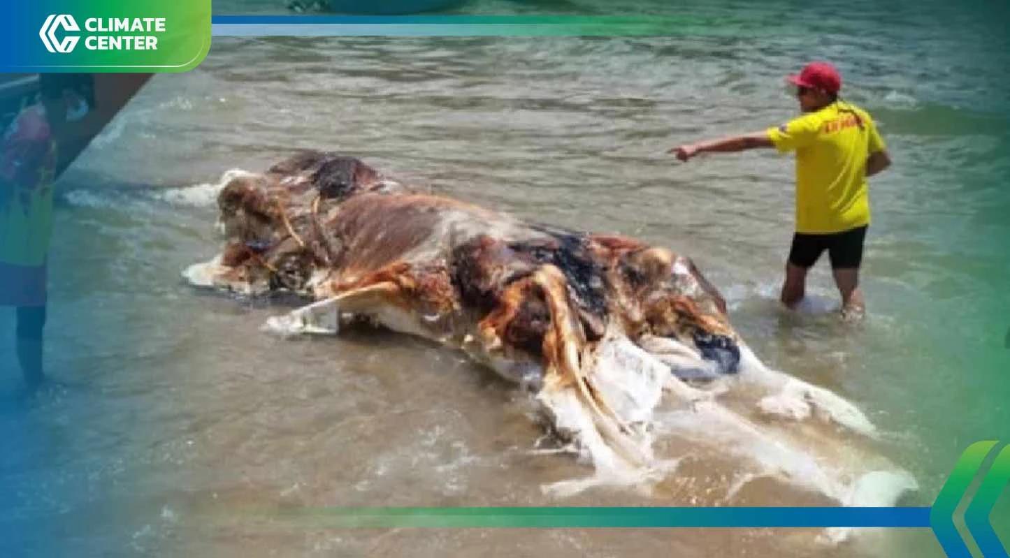 (5 เมษายน 2567) เจ้าหน้าที่พบซากสัตว์ทะเลขนาดใหญ่เกยตื้นบริเวณ บนหาด Teluk Melano ในเมืองลุนดู รัฐซาราวัก ประเทศมาเลเซีย