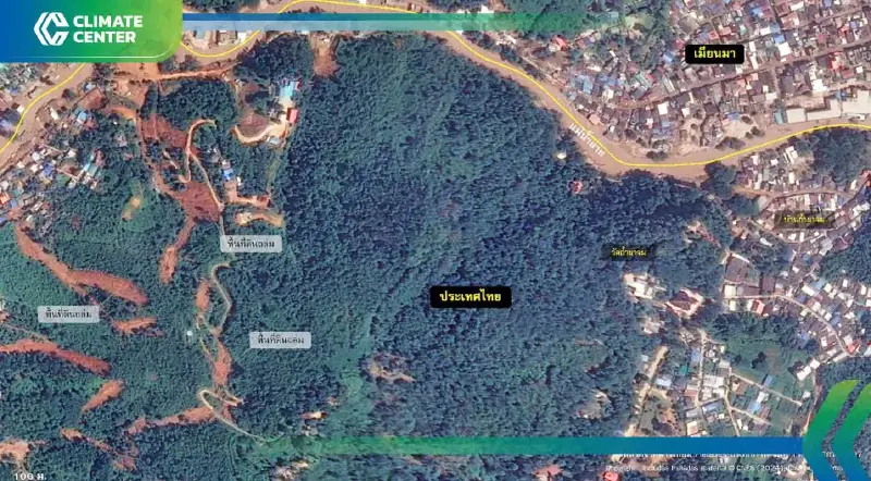 หลักฐานปรากฏชัดเจนด้วยภาพถ่ายจากดาวเทียมรายละเอียดสูง บันทึกภาพเมื่อวันที่ 13 กันยายน 2567 ใกล้ชายแดนประเทศเมียนมา ในเขตอำเภอแม่สาย ซึ่งเป็นแค่ส่วนเล็กๆของพื้นที่รับน้ำทั้งหมดของแม่น้ำสาย พบดินถล่มหลายจุดปรากฏเป็นสีน้ำตาลแดง ตัดกับสีเขียวของป่าไม้หรือแปลงเกษตรอย่างเห็นได้ชัด