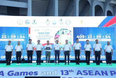 เมื่อวันเสาร์ที่ 7 ธันวาคม 2567 เวลา 18.00 ณ ลานพลาซ่า การกีฬาแห่งประเทศไทย นายสรวงศ์ เทียนทอง รัฐมนตรีว่าการกระทรวงการท่องเที่ยวและกีฬา เป็นประธาน Kick Off กีฬาซีเกมส์ ครั้งที่ 33 และกีฬาอาเซียนพาราเกมส์ ครั้งที่ 13 ที่ประเทศไทยเป็นเจ้าภาพจัดการแข่งขัน พร้อมด้วย เอกอัครราชทูตประเทศอาเซียนประจำประเทศไทย ที่ปรึกษารัฐมนตรีว่าการกระทรวงการท่องเที่ยวและกีฬา ผู้ช่วยรัฐมนตรีประจำกระทรวงการท่องเที่ยวและกีฬา คณะอนุกรรมการขับเคลื่อนอุตสาหกรรม ด้านกีฬาแห่งชาติ ปลัดกระทรวงการท่องเที่ยวและกีฬา ผู้แทนคณะกรรมการโอลิมปิคแห่งประเทศไทย ในพระบรมราชูปถัมภ์ เลขาธิการคณะกรรมการพาราลิมปิกแห่งประเทศไทย ผู้ว่าการการกีฬาแห่งประเทศไทยและผู้บริหารการกีฬาแห่งประเทศไทย ผู้แทนจังหวัดเจ้าภาพทุกจังหวัด ผู้บริหารสมาคมกีฬาแห่งประเทศไทยและนักกีฬา
