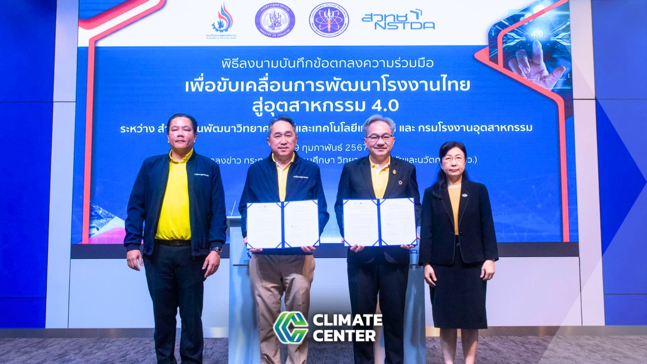 ศาสตราจารย์ ดร.ชูกิจ ลิมปิจำนงค์ ผู้อำนวยการสำนักงานพัฒนาวิทยาศาสตร์และเทคโนโลยีแห่งชาติ (สวทช.) และ ดร.จุลพงษ์ ทวีศรี อธิบดีกรมโรงงานอุตสาหกรรม กระทรวงอุตสาหกรรม ร่วมพิธีลงนามบันทึกข้อตกลงความร่วมมือเพื่อขับเคลื่อนการพัฒนาโรงงานไทยสู่อุตสาหกรรม 4.0 ระหว่าง สำนักงานพัฒนาวิทยาศาสตร์และเทคโนโลยีแห่งชาติ และ กรมโรงงานอุตสาหกรรม