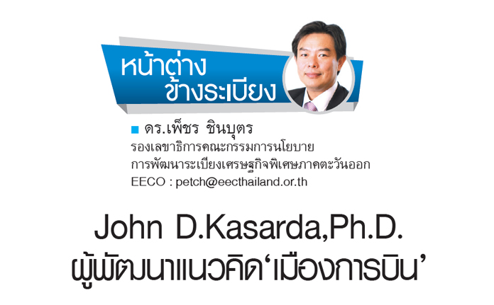 การสัมมนาเชิงวิชาการของ Dr.Kasarda ในวันที่ 9 มิถุนายนนี้ คนไทยจะได้รับฟังประสบการณ์ระดับโลกกับการบรรยายในหัวข้อ"ต้นแบบเมืองศูนย์กลางการบินและโอกาสทางเศรษฐกิจและธุรกิจ"การสร้างยุทธศาสตร์การผลักดันสนามบินอู่ตะเภา ให้เป็นเมืองการบินภาคตะวันออกของไทย และมุมมองการพัฒนาโครงสร้างพื้นฐานเพื่อรองรับการพัฒนาระเบียงเศรษฐกิจพิเศษภาคตะวันออก" ซึ่งเป้าหมายของการจัดสัมมนาในครั้งนี้ เพื่อถ่ายทอดความรู้ ประสบการณ์ด้านการบริหารเมืองการบินระดับโลกให้กับผู้เกี่ยวข้องกับธุรกิจการบินได้รับฟังแนวคิดและเรียนรู้วิธีการการพัฒนาเมืองศูนย์กลางการบินให้เกิดโอกาสทางเศรษฐกิจและธุรกิจสูงสุด