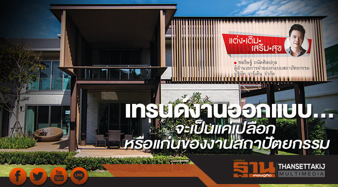 รูปแบบหรือสไตล์ของงานสถาปัตยกรรม ไม่ว่าจะเป็นโมเดิร์น ดีคอนสตรักชัน ทรอปิคัล คลาสสิก ฯลฯ ไม่ใช่ว่าจะเกิดขึ้นมาเพียงไม่กี่ปี แต่ละแบบอยู่กันมาแล้วเป็นร้อยปี ไม่ได้แกว่งเปลี่ยนไปเปลี่ยนมาเร็วเหมือนแฟชั่นเสื้อผ้า หรืองานออกแบบในบางสาขา แต่สิ่งที่สอดแทรกเข้ามาในตัวสถาปัตยกรรมตามกาลเวลา คือ เรื่องของเทรนด์การออกแบบ หรือความนิยมในยุคสมัยนั้นๆ ไม่ว่าจะเป็นเรื่องของวัสดุ โทนสี เทคนิคการก่อสร้าง หรือเส้นสายรูปทรง ที่เหล่าสถาปนิกมักจะจับเอามาประยุกต์เป็นลูกเล่นทางการออกแบบประกบกับรูปแบบหลักหรือสไตล์หลักของตัวอาคาร เพื่อเสริมสร้าง Character ให้กับตัวสถาปัตยกรรม