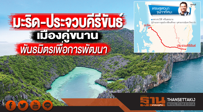 แต่ที่น่าสนใจมากไปกว่านั้น นั่นคือ เมื่อจังหวัดประจวบ คีรีขันธ์เกิดการพัฒนาการทางเศรษฐกิจและขยายตัวไปมากกว่านี้ ปัญหาใหญ่ที่จะตามมาคือ ปัญหาการขาดแคลนแหล่งนํ้าที่จะใช้ทั้งเพื่อการเกษตร การผลิตในอุตสาหกรรม การท่องเที่ยว และการบริโภคของคนในพื้นที่ ทั้งนี้เนื่องจาก แม้ประจวบจะเป็นอีกหนึ่งจังหวัดที่มีฝนตกชุก หากแต่นํ้าที่ไหลลงมาจากเทือกเขาตะนาวศรีที่สูงชัน จะไหลลงทะเลไปอย่างรวดเร็ว เพราะพื้นที่เชิงเขาของจังหวัดลาดเทลงอย่างมาก และมีพื้นที่ที่จะให้กักเก็บนํ้าแคบมาก ก่อนที่นํ้าทั้งหมดจะไหลลงทะเล อย่าลืมนะครับส่วนที่แคบที่สุดของประเทศไทยอยู่ ที่จังหวัดนี้ และมีระยะทางเพียง 11 กิโลเมตรเท่านั้น ในอนาคตประจวบจะขาดแคลนนํ้า ถ้าไม่เริ่มต้นสร้างพันธมิตรกับตะนาวศรี