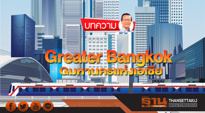 ถ้ากรุงเทพฯจะเติบโตเรื่อยๆ ขึ้นไป มหานครกรุงเทพฯคงจะก้าวเข้าสู่การเป็น “มหานครแห่งเอเชีย” เข้าทุกปี ในอีกไม่เกิน 20 ปีกรุงเทพฯจะมีประชากร 20 ล้านคน เป็นรองโตเกียวเท่า นั้น ในเอเชียเราคงต้องคิดและเตรียมพร้อมให้ดี ด้วยการจัดสรรพื้นที่เมือง จัดระบบเมืองด้านการเดินทาง ด้านการพัฒนาโครง สร้างพื้นฐาน สิ่งแวดล้อม ล่วงหน้าและเปิดพื้นที่อื่นๆ ให้มีเมกะโปรเจ็กต์คู่ขนานกับมหานคร กรุงเทพฯ เช่น อีอีซี หรือเช่นทางเหนือเพื่อติดต่อกับจีนทางด้านใต้ เพิ่มประสิทธิภาพการติดต่อ โลจิสติกส์ทางนํ้าข้าม 2 มหาสมุทร ด้านตะวันตกออกไปทวาย เมียน มา ตะวันออก E-WCorridor จากตาก ออกมุกดาหาร ไปสู่ทะเลเวียดนาม เหล่านี้คือกลยุทธ์ในการพัฒนาระดับประเทศ เราก็จะอยู่ใน “กรุงเทพมหานคร” ที่กำลังเปลี่ยนปรับเป็น “มหานครกรุงเทพฯ-Greater Bangkok ของเอเชีย” อย่างมีความสุข