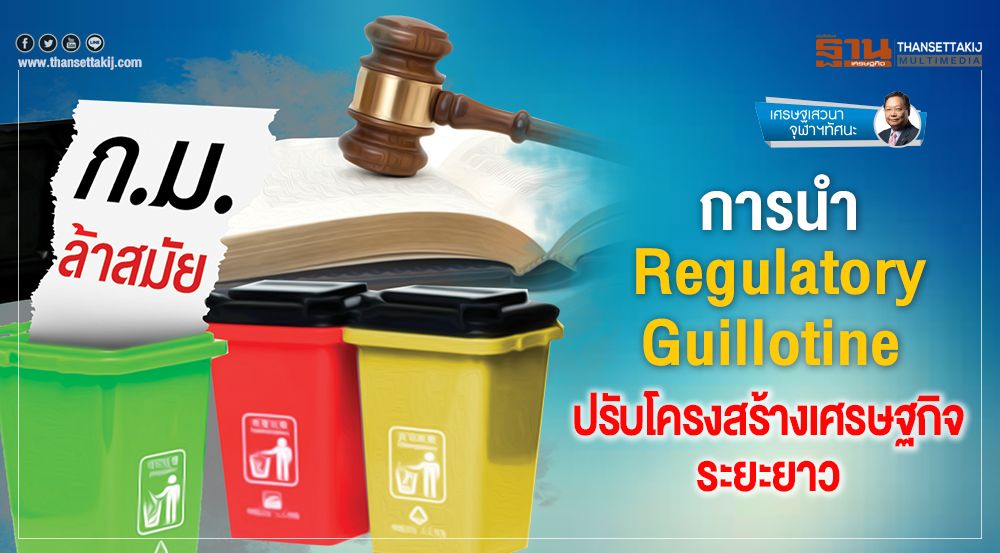 แนวคิดของ Regulatory Guillotine นั้นคือ รวบรวมและทบทวนการอนุญาตและกระบวนงานที่เกี่ยวข้องอย่างมีระบบ โปร่ง ใส รวดเร็ว และมีต้นทุนในการวิเคราะห์ตํ่า ได้อาศัยหลักการ บูรณาการทางกฎหมาย เศรษฐ ศาสตร์ การเปลี่ยนแปลงของวิทยาศาสตร์และเทคโนโลยี และผลกระทบเชิงสังคมไว้ด้วยกัน โดยมีจุดเริ่มต้นจากการหาประเด็นอุปสรรคจากภาคธุรกิจและภาคประชาชน (pain points) ว่าการอนุญาต และกระบวนงานใดที่ ก่อให้เกิดอุปสรรคจากภาคเอกชนและประชาชน และนำมาพิจารณาทบทวน ลด เลิก และควบรวม การอนุญาตและกระบวนงาน