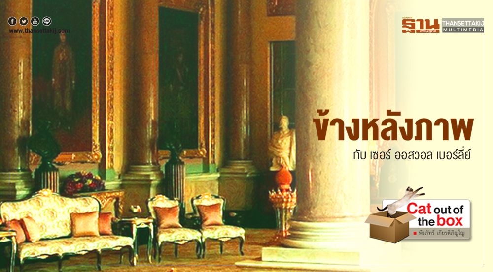 ก็ให้นึกถึงว่างานศิลปะจิตรกรรมภาพที่งดงามนั้น ข้างหลังภาพ มีฝีมือสำคัญคอยรังสรรค์อยู่ที่พระที่นั่งจักรีมหาปราสาท ในพระบรมมหาราชวัง กรุงรัตนโกสินทร์นี้ บริเวณโถงชั้นบน ข้างผนังประดับประดิษฐานรายล้อมไปด้วยพระบรมสาทิสลักษณ์ฝีมือจิตรกรสำคัญที่บรรจงถ่ายทอดทีแปรงสำแดงพระบรมเดชานุภาพแผ่ไพศาลบันทึกไว้ให้ผู้ได้มีโอกาสยลชมซาบซึ้งในวิญญาณจิตรกรรมสำนักศิลป์