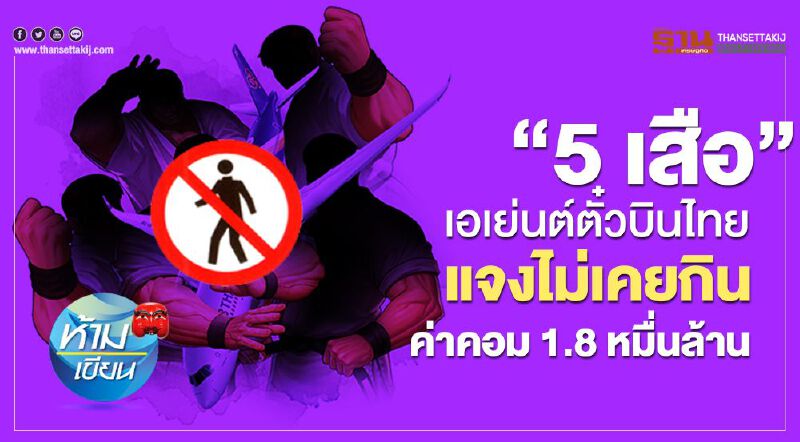 เรื่องราวของ “5 เสือ” เอเย่นต์ตั๋วบินไทย กับค่าคอมมิชชั่นหรือการให้อินเซ็นทีฟในด้านราคาแก่เอเย่นต์ปีละ 1.8 หมื่นล้านบาท ที่ “พรานบุญ” คอลัมนิสต์ของฐานเศรษฐกิจเขียนและลงในเพจ-เว็ปไซต์ฐานเศรษฐกิจ กลายเป็นประเด็นร้อนในวงการขายตั๋วโดยสารเครื่องบินในประเทศที่มีเอเย่นต์กว่า 200-300 ราย