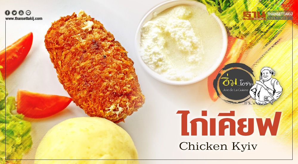 เมนูหะรูหะราสำหรับเจ้าหญิงเจ้าชายฝ่ายยูเครนนี้ใช้ “Cutlet” คือแผ่นแผ่แห่งเนื้อไก่ทุบเบาๆให้เสมอกันดี ปรุงรสเสียด้วยเกลือ_พริกไทย จากนั้นไปเอาแท่งเนยสดแช่เย็นมาม้วนเป็นไส้ ผนึกเสียให้เนยแท่งนั้นไม่เหลวทะลักยามต้องไฟแล้วจึงชุบไก่ไส้เนยนั่นลงไปในไข่สดตีฟอง เกลือกเข้าเสียด้วยเกล็ดขนมปัง เอาไปอบก็ได้/เอาไปทอดก็ดี สุกหอมดีแล้วยกขึ้น บีบน้ำมะนาวเหลืองนิดหน่อยลงไปในความกรอบกรุ่นนั้น รับประทานด้วยความสุขสมชุ่มฉ่ำจากเนยสดยัดไส้ที่ไม่ทำให้กิลิตของไก่แห้งผาก