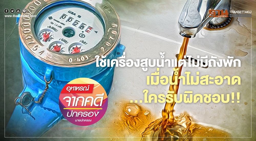 ประกอบกับคำชี้แจงของผู้ถูกฟ้องคดีที่ว่า การต่อเครื่องสูบนํ้าโดยตรงจากท่อนํ้าจะทำให้แรงดันนํ้าในเส้นท่อลดลงจนเกือบเป็นสุญญากาศ หากมีจุดรั่วในเส้นท่อเพียงเล็กน้อย ซึ่งปกตินํ้าภายนอกเส้นท่อจะไม่สามารถซึมผ่านเข้าไปภายในท่อได้ แต่แรงดูดของ เครื่องสูบนํ้าจะดึงนํ้าดังกล่าวเข้าไปในท่อได้ จึงส่งผลต่อคุณภาพนํ้าประปา