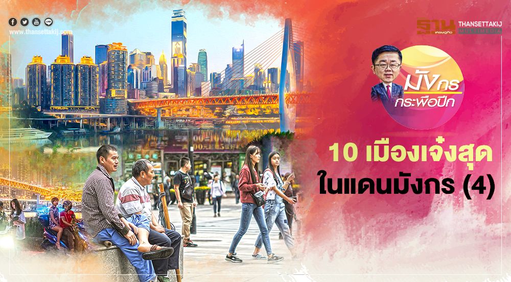 อันดับ 4 ฉงชิ่ง มหานครแห่งเดียวของซีกตะวันตกของจีน มีขนาดพื้นที่ราวครึ่งหนึ่งของพื้นที่ภาคอีสานของไทย ตัวเมืองตั้งอยู่บนเนินสูงเหนือบริเวณที่แม่น้ำแยงซีเกียงและแม่น้ำเจียหลิงไหลมาบรรจบกัน คล้ายกับอยุธยาที่มีแม่น้ำเจ้าพระยาและป่าสักคดเคี้ยวอยู่รายรอบ หลายคนจึงขนานนามว่าเป็นเมืองแม่น้ำ