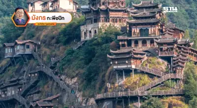 วิวแปลกตาสุดพิเศษสำหรับผมก็ได้แก่ หมู่บ้านโบราณที่ตรึงอยู่กับริมหน้าผา ซึ่งผสมผสานระหว่างสถาปัตยกรรมจีนโบราณ กับธรรมชาติเข้าไว้ด้วยกันอย่างลงตัว เวลามองจากระยะไกล จะเหมือนหน้าผาสูงที่มีคนมือดีไปขีดเขียนเส้นตรงขึ้นลงเชื่อมต่อกันไว้