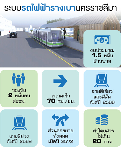 โคราชผุดรถไฟฟ้ารางเบา รับเมืองเติบโต งบ1.5หมื่นล้าน-เฟสแรกเปิดใช้ปี66