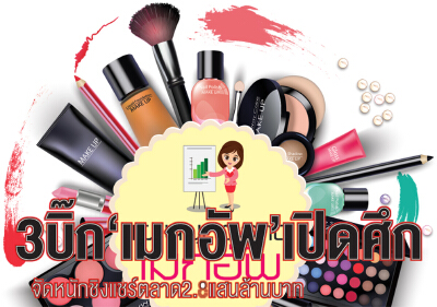 [caption id="attachment_164283" align="aligncenter" width="383"] 3บิ๊ก‘เมกอัพ’เปิดศึก จัดหนักชิงแชร์ตลาด2.8แสนล้านบาท 3บิ๊ก‘เมกอัพ’เปิดศึก จัดหนักชิงแชร์ตลาด2.8แสนล้านบาท[/caption]