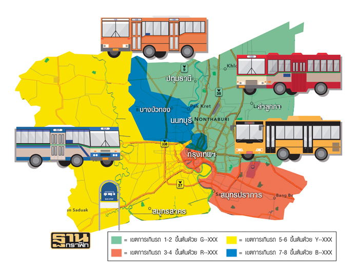 ทั้งนี้เส้นทางเดินรถโดยสารสาธารณะที่ปฏิรูปใหม่จะครอบคลุม 5 พื้นที่คือ พื้นที่โซนเขียว เหลือง แดง นํ้าเงิน และม่วง โดยจะเริ่มเปิดให้บริการนำร่อง 8 เส้นทางในแต่ละพื้นที่ เพื่อให้ประชาชนเกิดความคุ้นเคยก่อนที่จะประกาศใช้บริการครบทั้ง 269 เส้นทาง นอกจากนั้นยังจะมีการแบ่งกลุ่มรถที่วิ่งให้บริการแต่ละโซนพื้นที่นั้นๆออกมาเป็นกลุ่ม อาทิ โซนสีแดง พื้นที่ทิศเหนือของกรุงเทพมหานคร จะมีทั้งรังสิต ปทุมธานี แบ่งออกเป็น 3 กลุ่ม โดยเสนอให้มีการประมูลเป็นกลุ่ม เช่น กลุ่ม 1 จำนวน 10 เส้นทางก็จะมีการประมูลทั้งกลุ่ม โดยกำหนดเพียง 1-2 ผู้ประกอบการเท่านั้น หากในอนาคตมีความจำเป็นต้องปรับเส้นทางก็สามารถปรับได้ทันทีโดยไม่กระทบต่อประชาชนและผู้ประกอบการราย อื่นๆอีกทั้งยังเกิดทางเลือกในการเดินทางได้อีกทางหนึ่งด้วยและยังสอดคล้องกับการปรับเปลี่ยนของเมือง