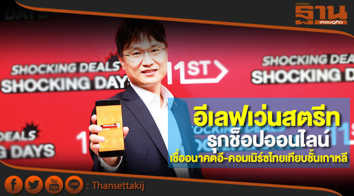 โดยนายยุน ชาง ชอง รองประธานเจ้าหน้าที่บริหาร ฝ่ายขาย บริษัทอีเลฟเว่นสตรีท (ประเทศไทย) จำกัด เปิดเผยว่าตลาดอี-คอมเมิร์ซของไทยมีแนวโน้มการเติบโตรวดเร็วเหมือนเกาหลีใต้ โดยในเกาหลีใต้ตลาดอี-คอมเมิร์ซมีการเติบโตปีละประมาณ 50% ทั้งนี้เป็นผลมาจากการเติบโตของการช็อปปิ้งออนไลน์ผ่านโมบาย คาดว่าภายใน 6-7 ปีข้างหน้า การเติบโตของธุรกิจอี-คอมเมิร์ซในไทยจะมีสัด ส่วนการเติบโตเท่ากับเกาหลีใต้ จากปัจจุบันเติบโตปีละ 20%