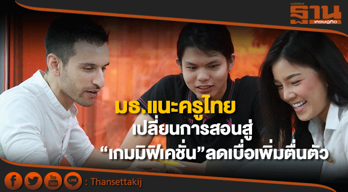 นักวิชาการต่างชาติ มหาวิทยาลัยธรรมศาสตร์ (มธ.) ชี้ระบบการเรียนการสอนแบบดั้งเดิมของไทย ทำให้เด็กไม่กระตือรือร้น ไม่ตื่นตัวกับการศึกษา พร้อมแนะใช้หลักเทคนิคและกลไกของเกม หรือ เกมมิฟิเคชั่น (Gamification) เปลี่ยนการเรียนการสอนแบบดั้งเดิมที่น่าเบื่อ ให้เป็นการเรียนการสอนที่ใช้หลักกลไกของเกม ทำให้ผู้เรียนมีความตื่นตัว มีความกระตือรือร้นในการเรียน