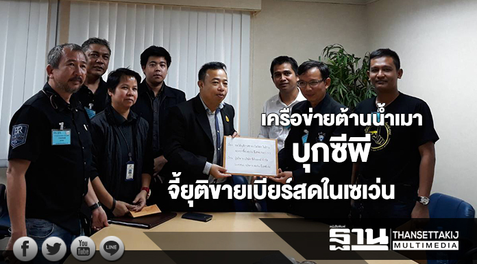 เครือข่ายต้านน้ำเมา บุกซีพี จี้ยุติการขายเบียร์สดในเซเว่น หวั่นกระตุ้นนักดื่มหน้าใหม่ เพิ่มอุบัติเหตุเจ็บตาย ชี้หมิ่นเหม่ผิดกฎหมายคุมน้ำเมา ยันเบียร์สดต้องขายเฉพาะร้านมีที่ให้นั่งดื่มเท่านั้น ไม่ใช่ร้านสะดวกซื้อ