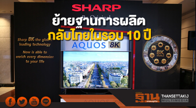“ชาร์ป” หวนคืนตลาดเครื่องใช้ไฟฟ้าเมืองไทย พร้อมทุ่ม 100 ล้านบาทย้ายฐานการผลิตจากมาเลเซียสู่ไทยในรอบ 10 ปี สินค้าเรือธงกลุ่มแรกนวัตกรรมทีวี “อควอส 8 เค” หวังปั้นรายได้โต 30% ในปีนี้