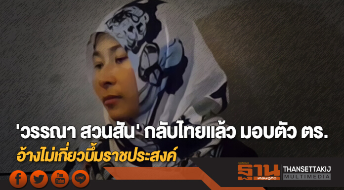 'วรรณา สวนสัน' กลับไทยแล้ว มอบตัว ตร. อ้างไม่เกี่ยวบึ้มราชประสงค์