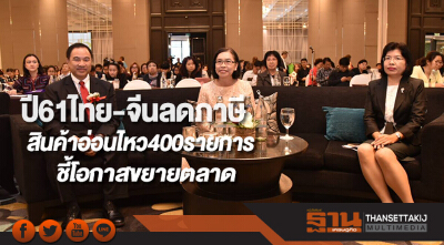 ปี61ไทย-จีนลดภาษีสินค้าอ่อนไหว400รายการชี้โอกาสขยายตลาด
