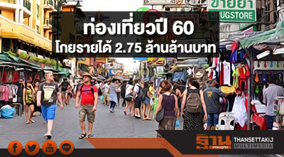 ท่องเที่ยวปี 60 โกยรายได้ 2.75 ล้านล้านบาท ขยายตัว 2.75%