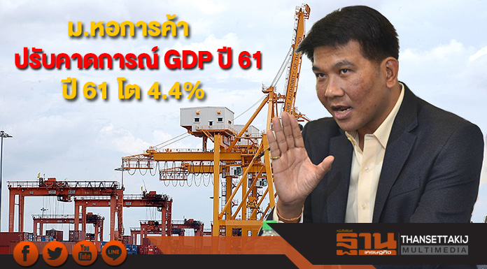 นายธนวรรธน์ พลวิชัย ผู้อำนวยการ ศูนย์พยากรณ์เศรษฐกิจและธุรกิจ มหาวิทยาลัยหอการค้าไทย เปิดเผยถึงประมาณการภาวะเศรษฐกิจไทย(จีดีพี) ในปีนี้ว่า จะขยายตัวได้ 4.4% จากเดิมที่คาดการณ์ในเดือนต.ค. 2560 ว่าจะขยายตัว 4.2% โดยสาเหตุที่ต้องปรับประมาณการการขยายตัวทางเศรษฐกิจใหม่มาจากปัจจัยบวกคือ การส่งออกสินค้าฟื้นตัวชัดเจนขึ้นและคาดว่าจะโตที่ประมาณ 6% ตามเศรษฐกิจของประเทศคู่ค้าที่ขยายตัวอย่างต่อเนื่องและขยายตัวสูงกว่าที่เคยคาดการณ์ไว้ ขณะที่การขยายตัวของเศรษฐกิจโลกในปีที่ผ่านมาขยายตัวที่ 3.7% ในปีนี้คาดว่าจะขยายตัวที่ 3.9% อัตราเงินเฟ้อทั่วไปที่ประมาณ 1.3% ราคาน้ำมันดิบเฉลี่ยอยู่ที่ 60 ดอลลาร์สหรัฐฯต่อบาร์เรล ค่าเงินบาทเฉลี่ย 31.0 บาทต่อดอลลาร์สหรัฐ และการที่ คณะกรรมการนโยบายการเงิน (กนง.) คงอัตราดอกเบี้ยไว้ที่ 1.5% รวมทั้งภาคท่องเที่ยวที่ยังขยายตัวอย่างต่อเนื่อง ระดับราคาสินค้าเกษตรปรับตัวสูงขึ้นทำให้รายได้เกษตรกรเพิ่มขึ้น การลงทุนภาคเอกชนฟื้นตัวตามการส่งออก นอกจากนี้การลงทุนของภาครัฐที่มีมากขึ้น จากการลงทุนในโครงการพัฒนาระเบียงเศรษฐกิจพิเศษภาคตะวันออก ( อีอีซี) และอยู่ใต้สมมติฐานว่าการเมืองไทยจะต้องมีเสถียรภาพ