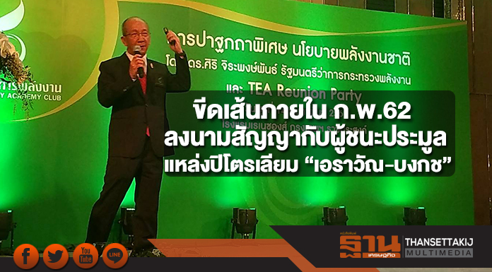 “รมว.พลังงาน" ขีดเส้นภายใน ก.พ.2562 ลงนามสัญญากับผู้ชนะประมูลแหล่งปิโตรเลียม “เอราวัณ-บงกช”