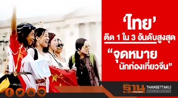 'ไทย' ติด 1 ใน 3 อันดับสูงสุด! "จุดหมายนักท่องเที่ยวจีน"